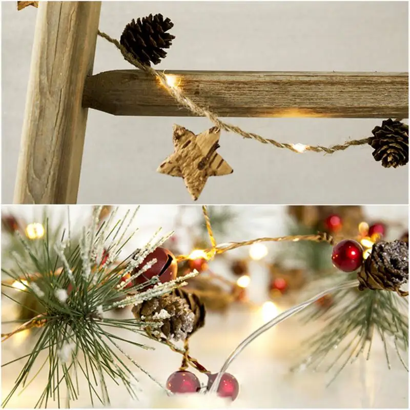 2M 20LED Christmas String Lights Pine Cone Red Berry Christmas Garland Fairy Lights For Wedding Chr