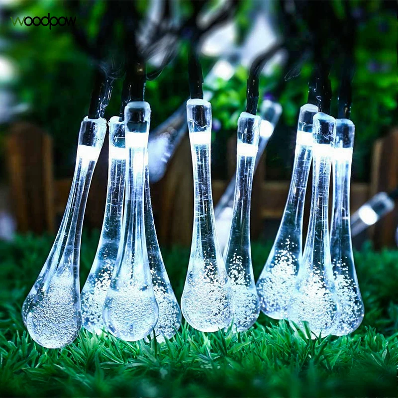 HOT Sale Woodpow 20LED 30LED 40LED Solar Water Droplet String Lights Outdoor Garden Decor Tree Bubble Light